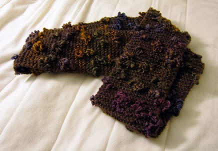 ブラウンの糸に、紫、青、オレンジ、緑などのネッブが入っていて、全体の色合いは地味目だけど編み地が可愛い!