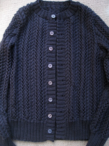 昨年か一昨年に編んでいたパーツを発見して、スチーム、とじはぎ、前立ての編み出しまでして完成させたのでした。