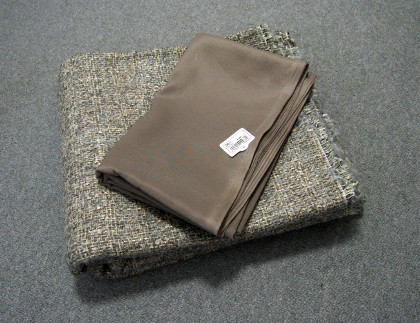 こんな写真じゃ灰色にしか見えませんが、茶色、ベージュ、グレー、金の糸などで織られた素敵な生地なのです。