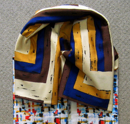 身頃の派手な柄になじむよう、ボーカラーには地味目の生地を・・・と考えていた私に、この生地が新しい視点を開いてくれました!