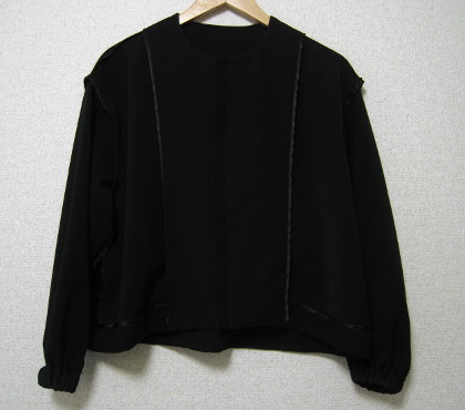 パターン変更点:袖口のリブを共布のカフス(ゴム入り)に変更。