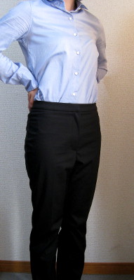 以前作った製図パターンの身巾を詰め、スリムパンツを作りました。