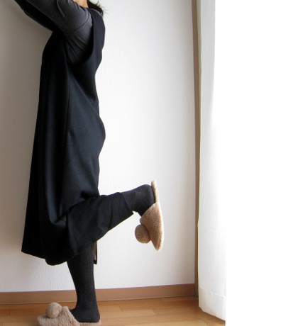先日、床の冷たさに耐えかねて買ったぽんぽん付きスリッパがお気に入りです。